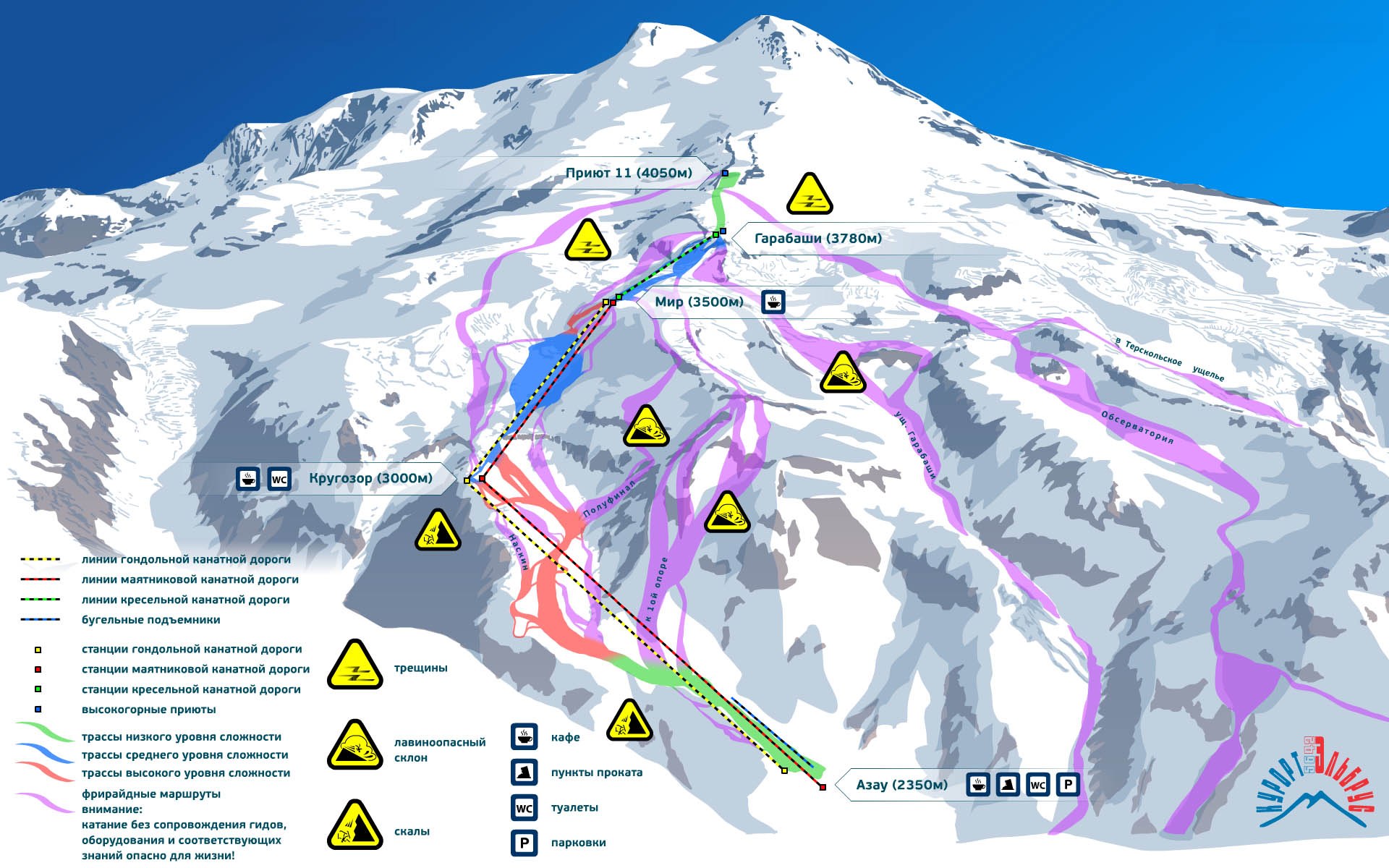 Горнолыжные трассы Эльбруса схема