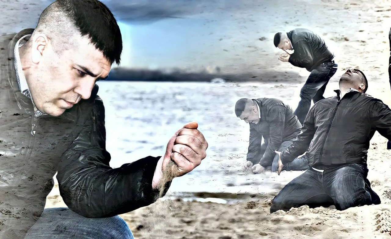 Мем мужик с песком