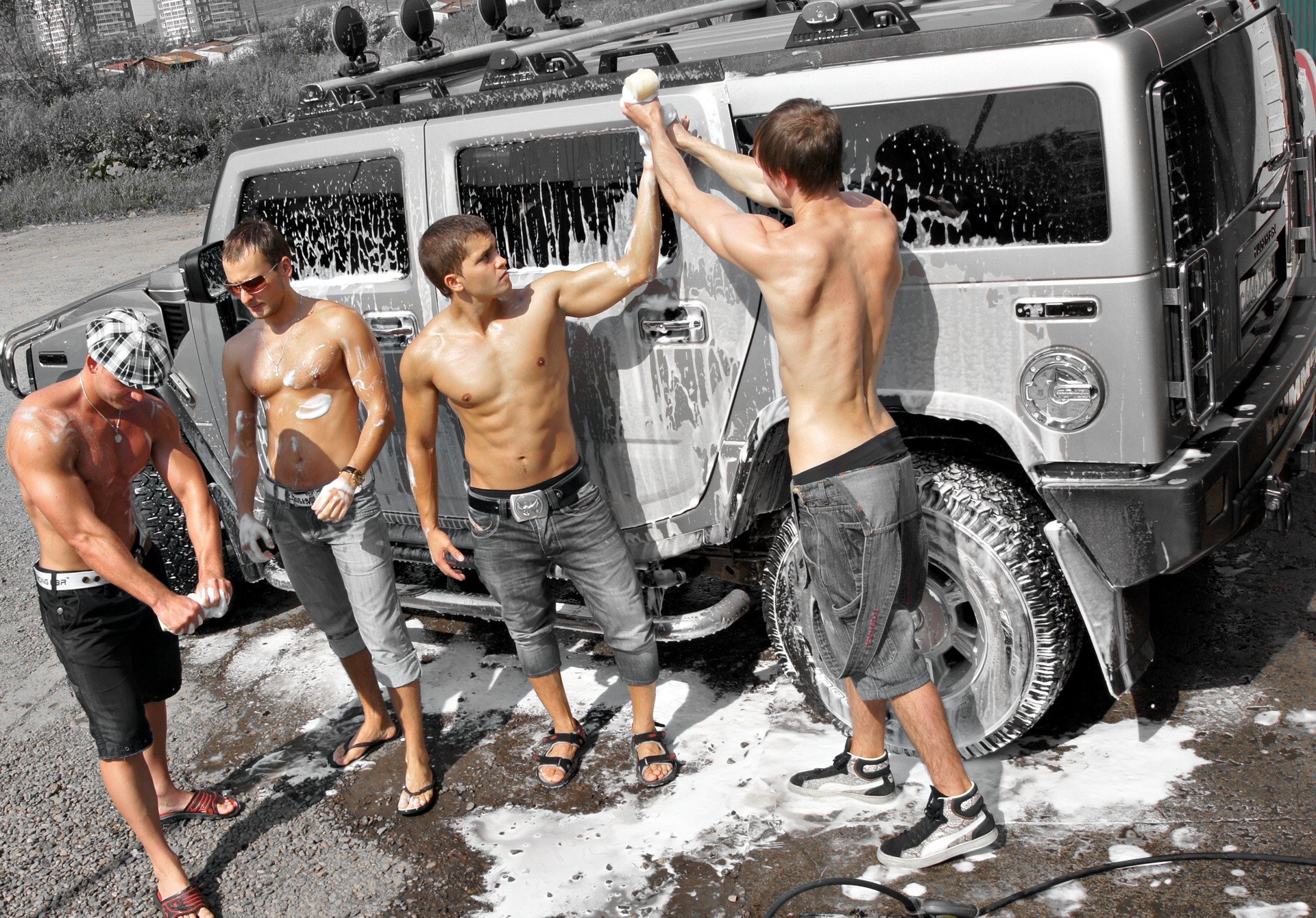 Парни на автомойке