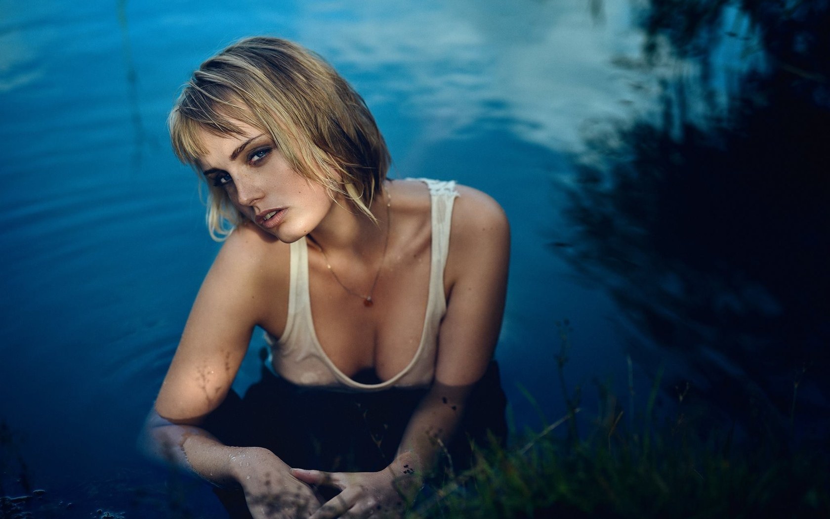 Блондинка с каре на море