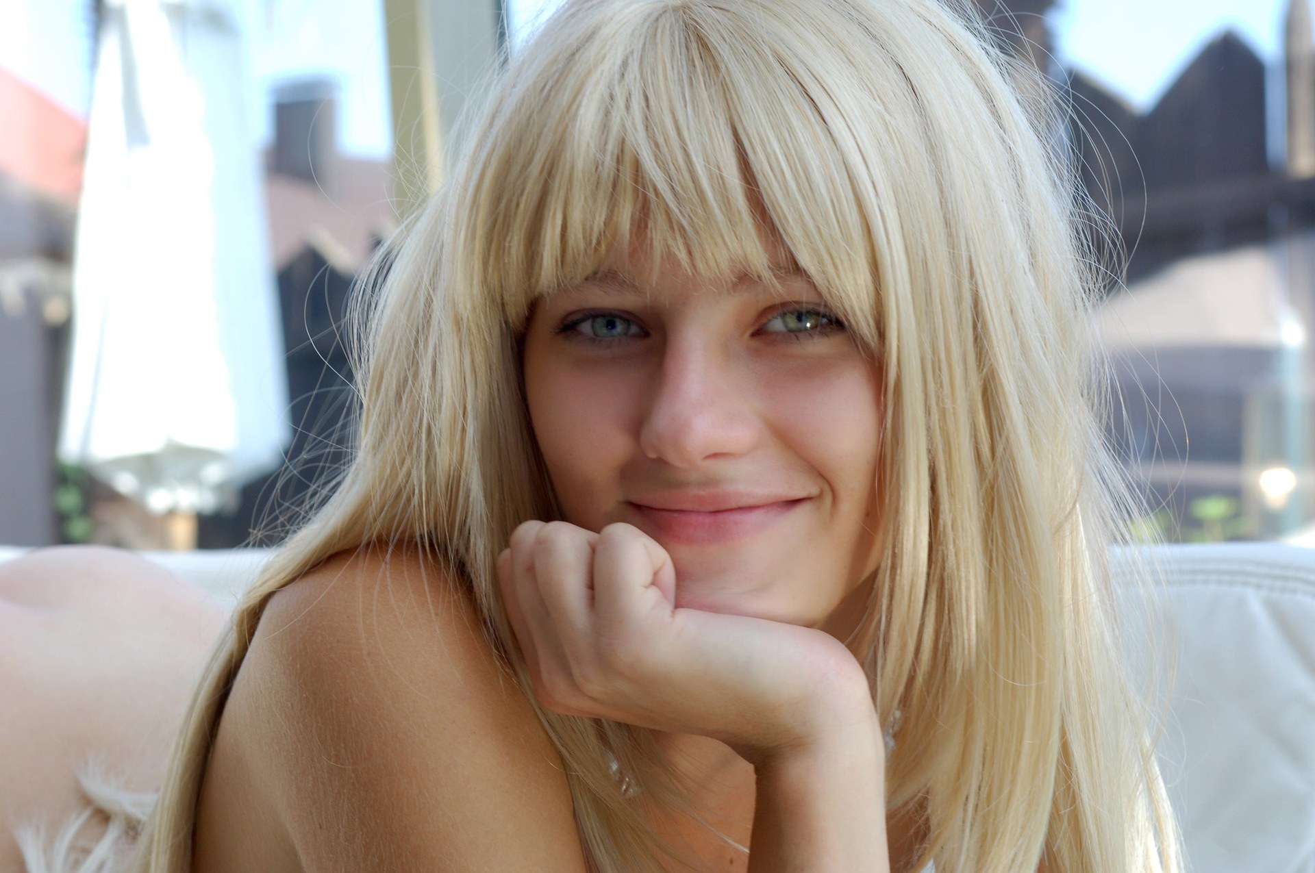 Девушки блондинки с челкой